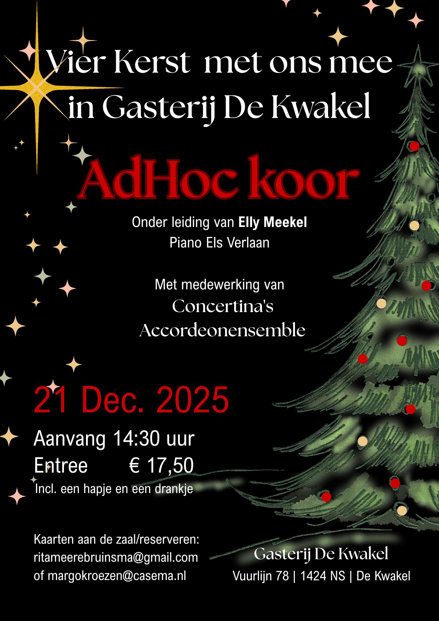- 21 december: klein kerstconcert in samenwerking met het AdHoc koor